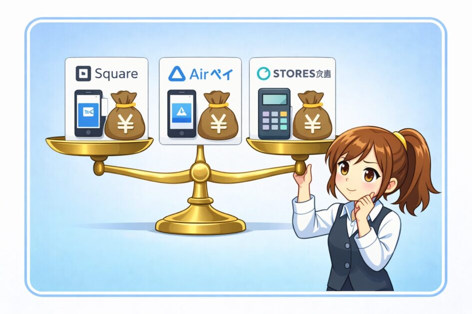 この記事では、Square、Airペイ、STORES決済を題材に、カードとQRの手数料を整理し、売上規模や決済比率に合わせた判断方法をまとめます。