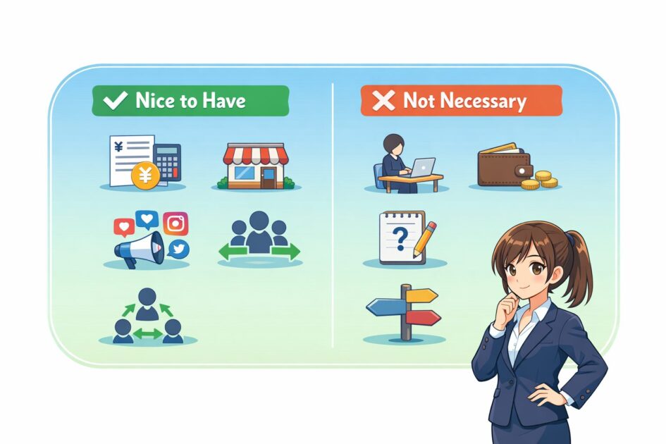 屋号は「決めること」より「統一して使うこと」が大事です。統一が必要な場面が少ないなら、焦らなくて大丈夫です。