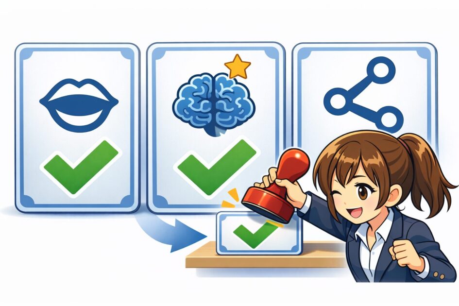 | 読みやすさテスト | 声に出す・伝わるか確認 | 3〜5個に絞る | 読めない・言いにくい |