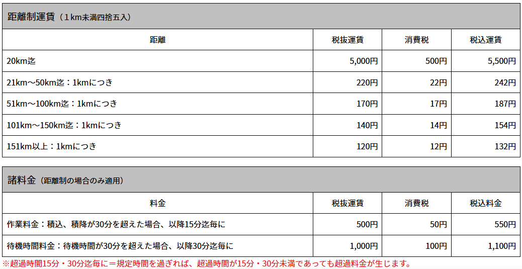 参考までに、以下赤帽での料金表です。